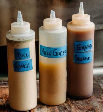 We like to use a thin drinking yogurt made with goat’s milk, but buttermilk will work just fine. Add 2 cups of buttermilk or goat’s yogurt to a blender, 1/2 cup of kewpie (Japanese mayo) and 1-2 TB of chopped fresh dill (dried dill will work when fresh is not available). Blend until smooth. Pour into a squeeze bottle or a quart jar. Label and keep refrigerated.