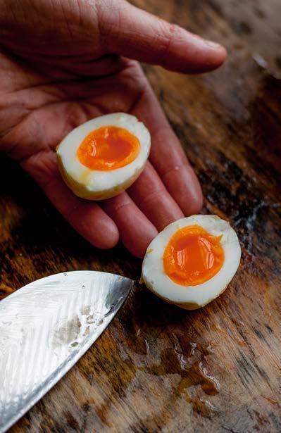 The Ajitama Egg (or Ramen Egg) method may take some practice to perfect. Egg size, egg temperature, burner size and burner strength will vary. Two very important key elements to successful Ajitama Eggs: use room temperature eggs before cooking and an ice bath after cooking (which is simply a medium bowl of ice water at the ready).