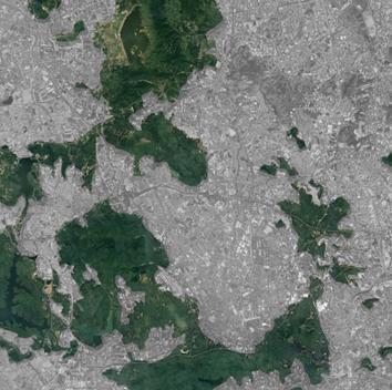 Images below are aerial photographs illustrating 625 square kilometers of each of the first-tier cities. It is clearly showing that the green spaces of the four first-tier cities are mostly mountains and urban artificial parks, but there is almost no rural or farmland left.