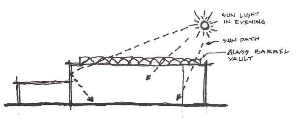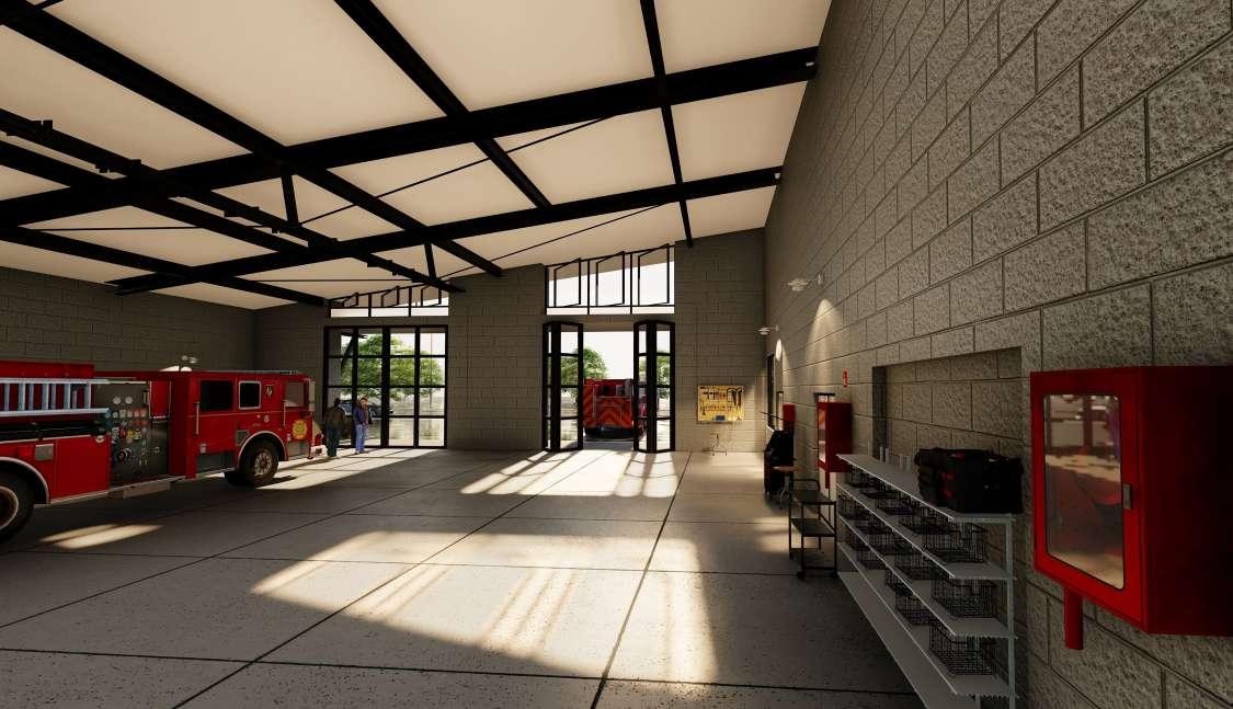 I design the spaces to be as efficient as possible. Placing the more occupied spaces on the east side of my site meant they would stay cooler throughout the day because the longest sun exposure would be from the morning sun. Also during the evening, the roof slope of the apparatus Bay will shade these areas, keeping them cooler.