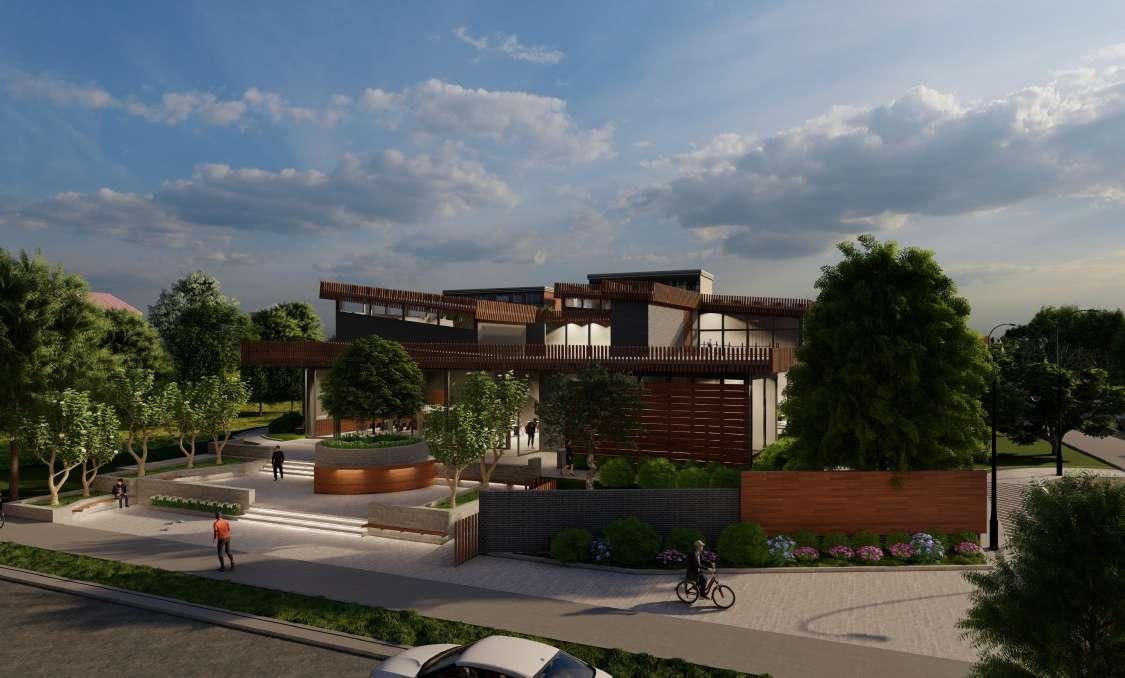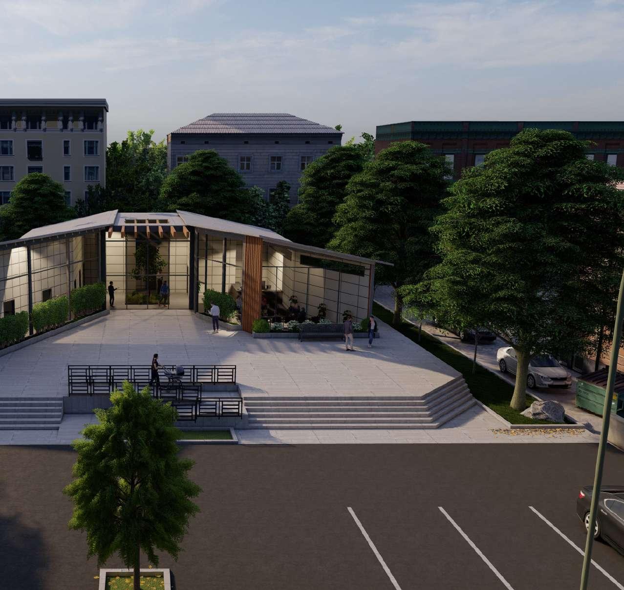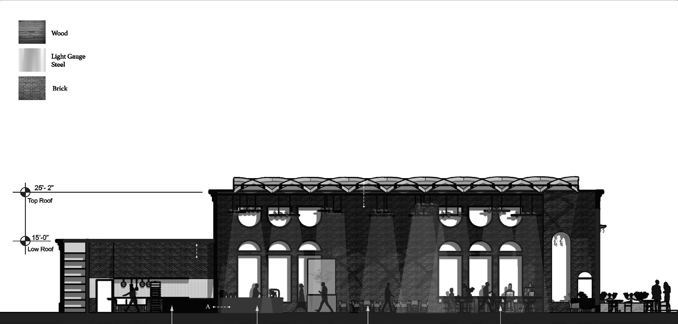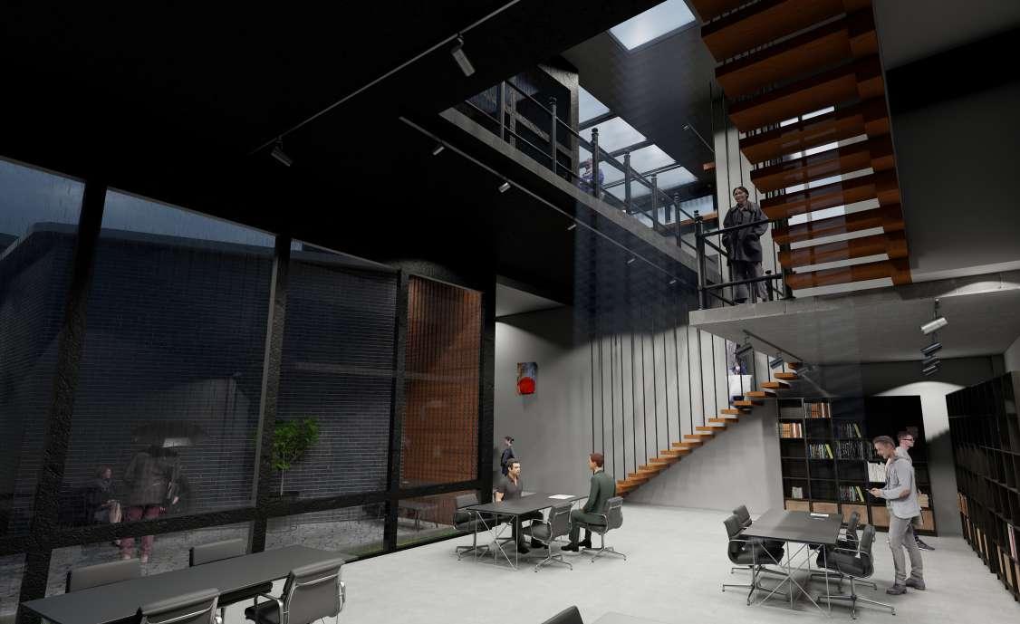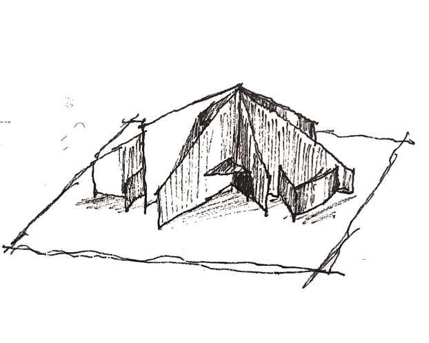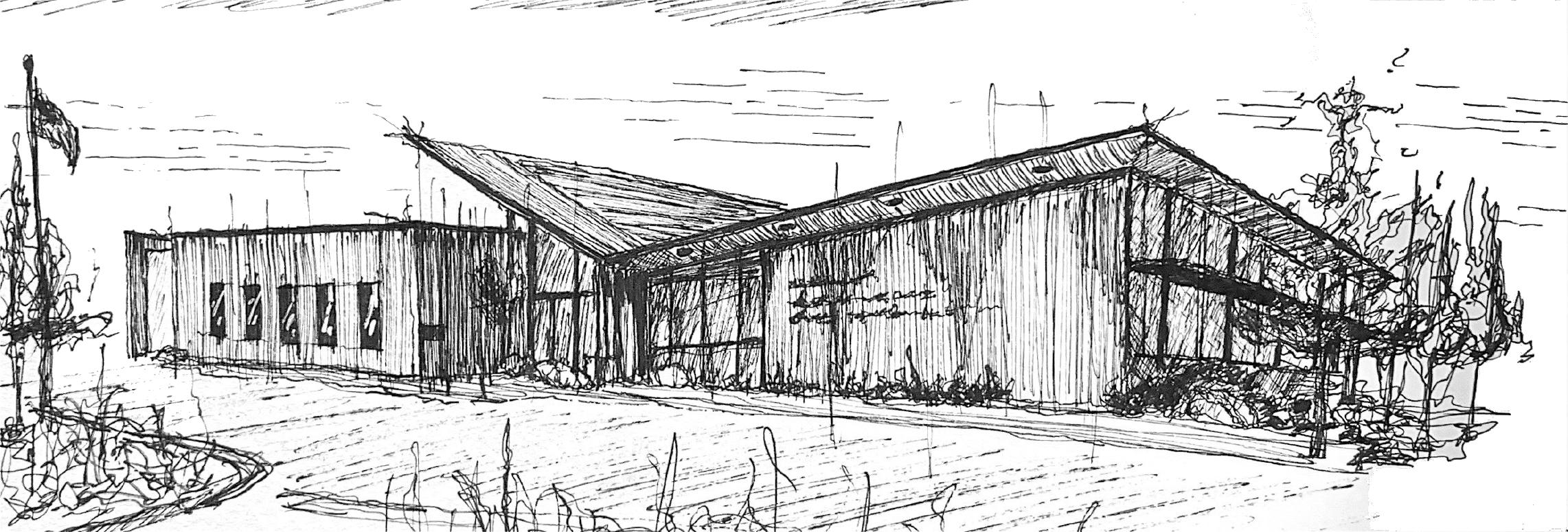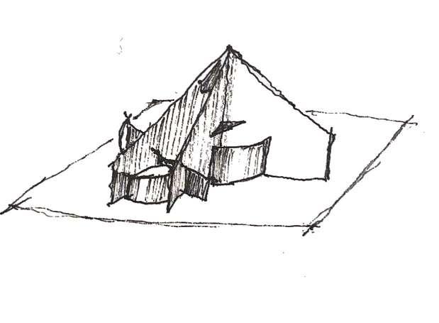 Helping a broken community. Designing a new Center for Conversation to bring people together. Including a lecture hall, Library, and an art gallery. My design inspiration was the notion of individuals creating the community. I wanted this structure to give a sense of unity. I achieve this concept with the use of vertical lines as well as angled roof structures. The roof system indicates an individual starting at a low point and rising.