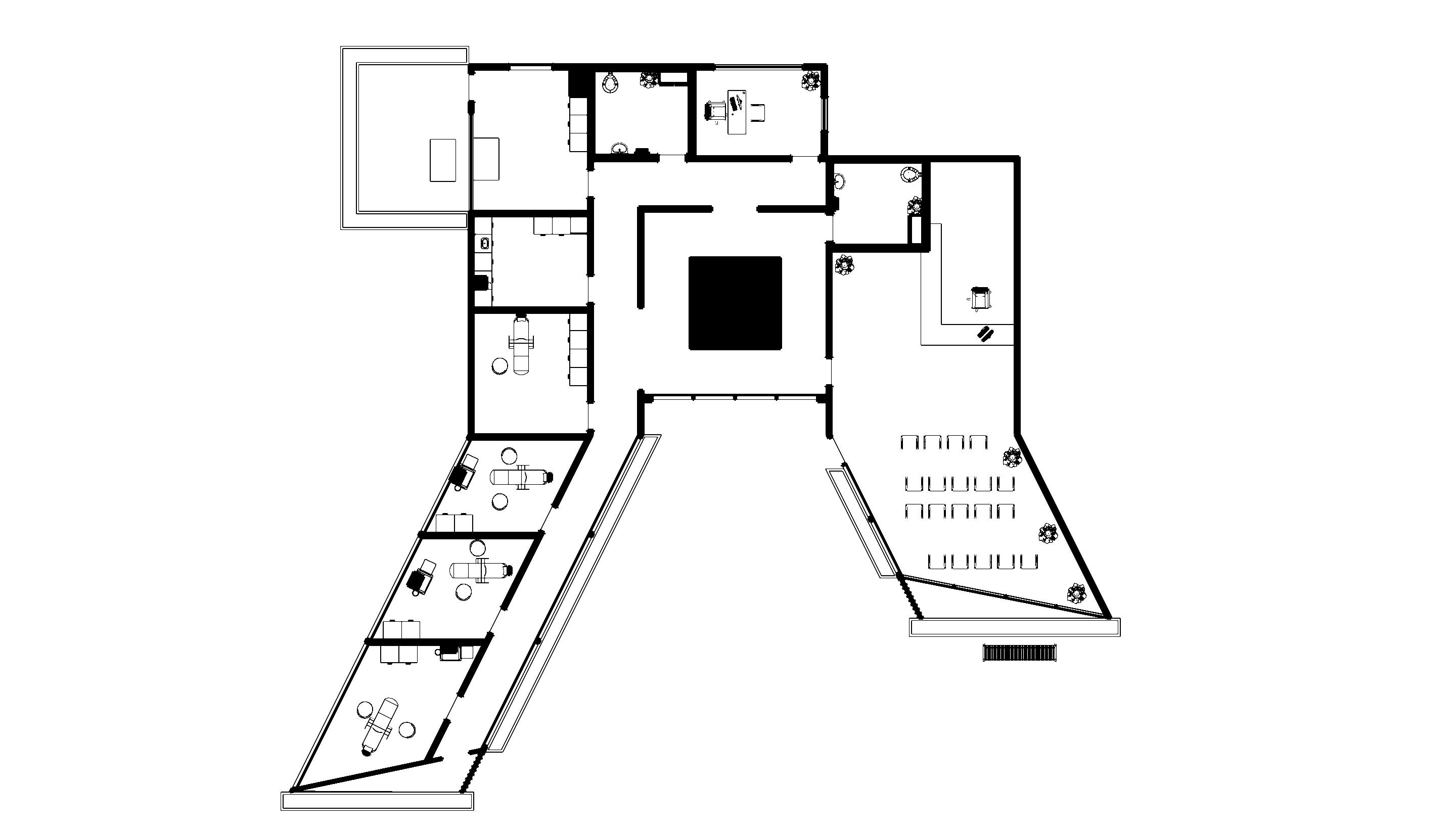 Designing a building for a busy city comes with opportunities to give back to the community. Raising the structure above the main street gives the public a spot to rest. Taking Inspiration from Mies Van Der Rohe and the design of the Seagram tower. This gives the structure a tri-parti plan consisting of the busy Sanfransico Street, a lifted plaza, and the building itself.