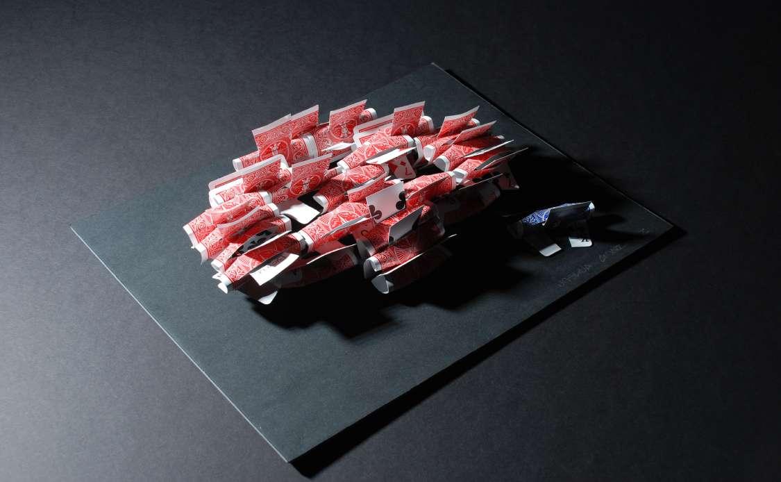 A project that tested our creative side. Taking a deck of playing cards and having to make an exact series of cuts and folds in each card and then tasked with creating a unique model. Each card has to fit into one another with zero adhesives.