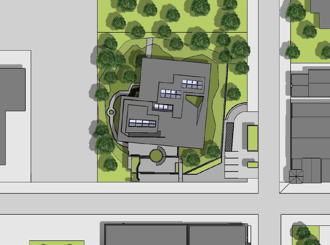 After watching a film on the design process of Frank Gehry, we were tasked with drawing intersecting lines and arches. taking this parti, we would then create our design. My concept gave a sense of hierarchy, where all lines would come together to give a feeling of importance.