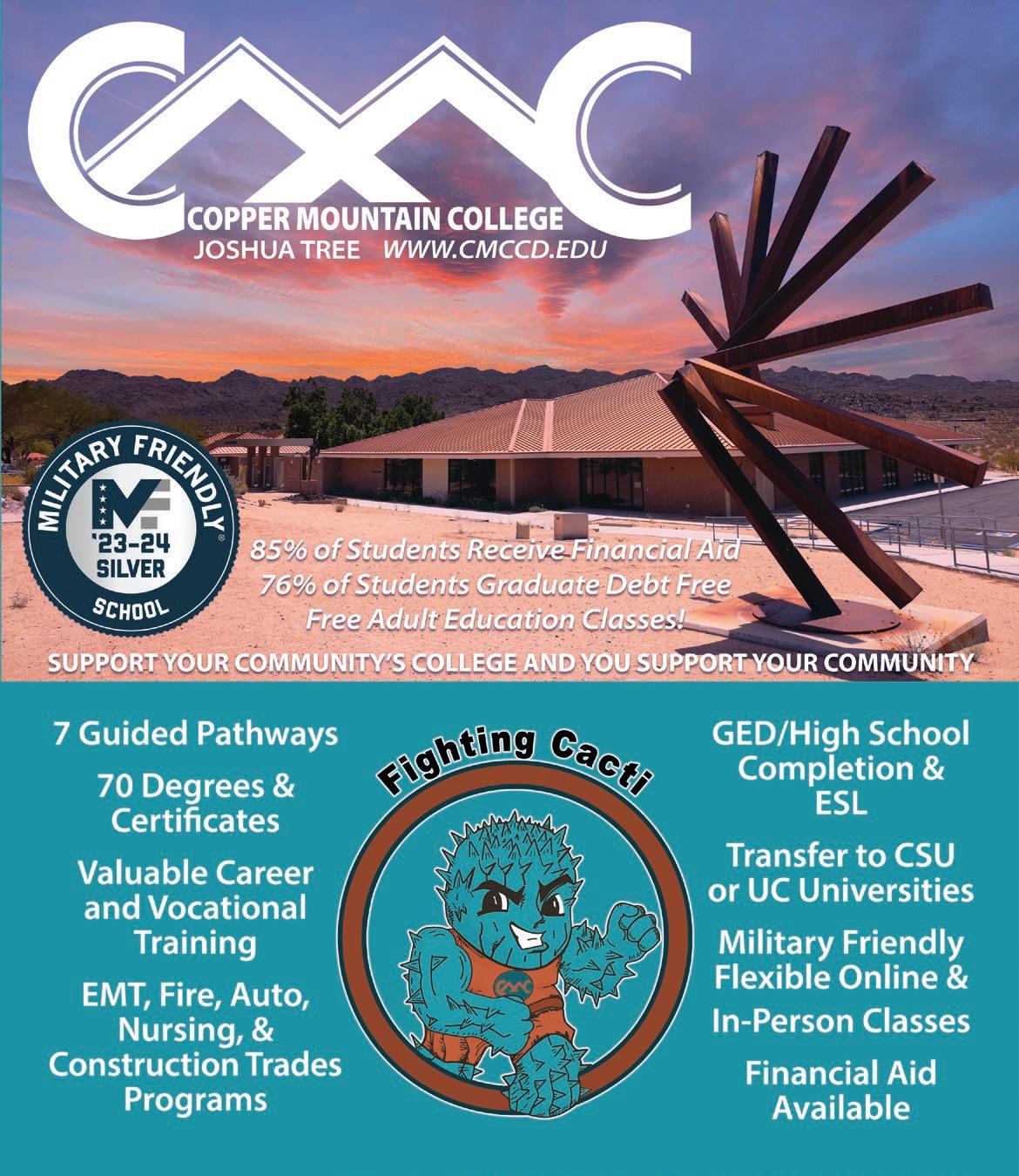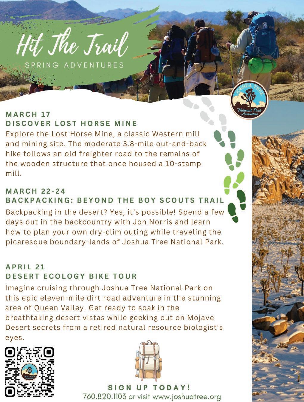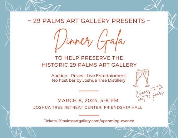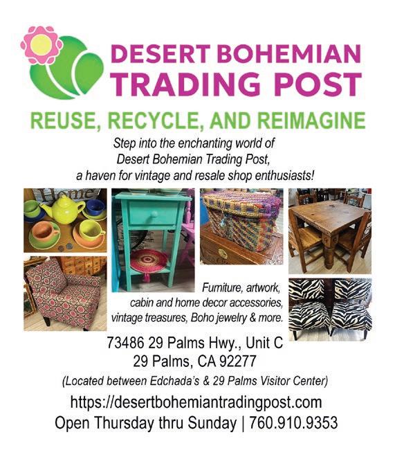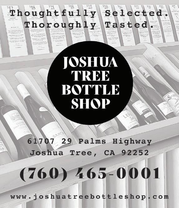 PARTNER WITH US! Photo credit: Josh Kizziar joshkizziarphotography.com Partner with Joshua Tree Voice through print and digital advertising DISTRIBUTION: 22,000 READERSHIP: 100,000 + and growing Our print distribution covers the greater Joshua Tree area from Morongo Valley to 29 Palms and Wonder Valley The Greater Coachella Valley, from Palm Springs to Indio San Diego County Orange County Los Angeles County To advertise, call (760) 237-0124 or email info@JoshuaTreeVoice.com PO Box 1299, Joshua Tree, CA 92252 To purchase print issues and subscriptions, stay in the loop through our mailing list, or to see our most current distribution list visit JoshuaTreeVoice.com. Proud to announce we are a recommended restaurant in the Michelin Guide for the 2nd year in a row (2022, 2023) (760)-417-4471 tacquila.com or book through Open Table 415 N. Palm Canyon Dr., Palm Springs, CA Authentic Mexican cuisine, cooked to perfection!