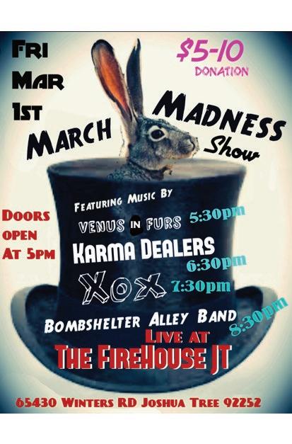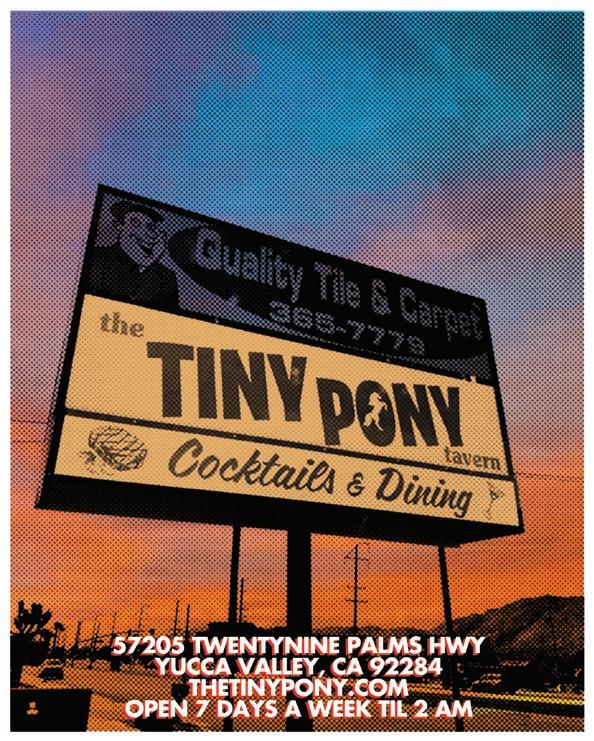 29 Palms Inn, 29 Palms Creative Center, Agua Caliente Cultural Plaza, Cabots Pueblo Museum, Casuelas Café, Coco Rose, Compound YV, Copper Mountain College, Cork Tree Restaurant, Coyote Cone, Desert Dog Coffee, Desert Vacation Rentals, Diamond Environmental Services, Fans Sports Bar & Grill, Karen Martin of Farmers Insurance, Healthy Generations, Hi-Desert Nature Museum, Hi-Desert Tails, Karen Lowe of Inspire Realty, Jenifer Halbert Realtor, Joshua Tree Saloon, Joshua Tree Bottle Shop, Joshua Tree Excursions, King of the Hammers, Kitty’s Wildlife Refuge, Larry & Milt’s Western Café, Libby’s Realty, Nature’s Health Food & Café, Palm Desert Bike N’ Brews, Peace of Mind Retirement Planning, Pointed Pearl, Recapitate Hats, Rock & Rapture, Sacred Fire, Stargazing Joshua Tree, Tac/Quila Authentic Mexican Cuisine, Thai Café, The Saint Boniface Boutique Hotel, Tiny Pony, Yucca Valley & 29 Palms, and Tortoise Rock/ Spotlight 29 Casino.