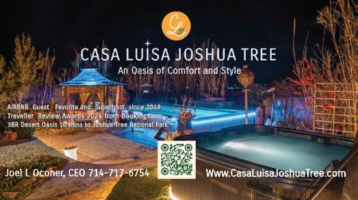As we journey into the fall and winter seasons and the many holidays that come with it, may I just express one more time how fortunate we are to tell your stories, raise your voice, promote your art, and tell the world that it’s not just our National Park that makes this place fascinating - it’s all of YOU. Please keep sending in your ideas and events to info@joshuatreevoice.com, and feel free to upload your events onto our website’s community calendar. Scan QR code to visit our website and view all our digital magazines