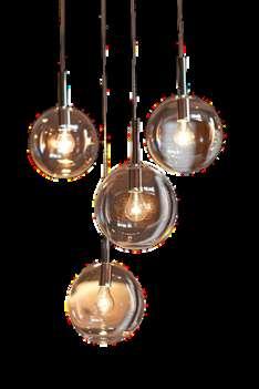 Iluminación principalmente indirecta a base de lamparitas, de pie de mesa o colgantes, pero también iluminación técnica para iluminar correctamente los puntos de interés, obras de arte etc..