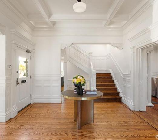 Designed by Swedish architect Nicolaus August Nordin, 199 Carl Street is a stately corner single-family home nestled in the desirable Cole Valley neighborhood This thoughtfully remodeled residence combines timeless period details with modern luxury, offering an exceptional living experience across four expansive levels The spacious floor plan features high ceilings and generous living spaces throughout The main level boasts a chef's kitchen outfitted with top-of-the-line appliances and a large island, a welcoming foyer, a sophisticated living room, and an elegant dining area perfect for entertaining. A half bathroom and direct access to the professionally landscaped backyard complete this level. Upstairs, you'll find three bedrooms, including the primary suite, each with its own ensuite bathroom. The top floor also includes a large family room for children's activities, an additional bathroom, and flexible rooms that can serve as home offices, guest bedrooms, or fitness spaces. The lowest level offers abundant storage options, a half bathroom, and a versatile ballroom, ideal for