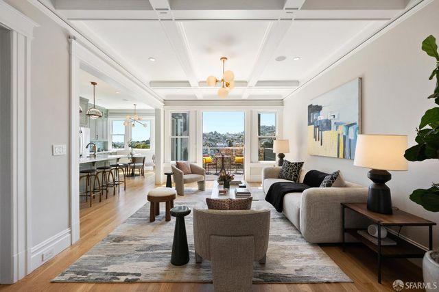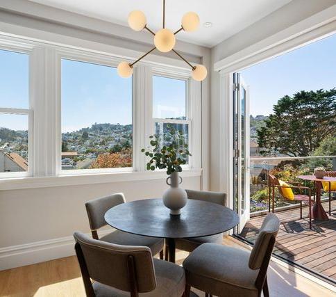 Bask in incredible south-facing views and all-day sun at 4141 23rd Street, a masterfully reimagined 1904 Victorian on a quiet street with ample parking just a five-minute stroll to 24th Street or the Castro This 6-bedroom, 45bath home spans four luminous levels, blending timeless character with modern sophistication The top floor hosts a luxury primary suite with sweeping southern views, a spa-like bath, and two additional bedrooms with a shared bath. The main level centers on a light-filled great room with a chef's kitchen featuring Wolf appliances, Carrara marble, a breakfast area, and expansive windows framing panoramic vistas, flowing seamlessly to a view deck ideal for indoor/outdoor living. On the garden level, a private au-pair suite offers a bedroom, living and dining areas, a full bath, laundry hookups, and French doors opening to an expansive patio. Loaded with integrated technology audio/video, Sonos sound, WiFi access points on every level, and EV charging the home is completed by landscaped gardens, multiple decks, and a mature fruiting fig tree. A rare Noe Valley