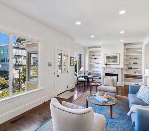 Situated on a quiet cul-de-sac of just 2 homes, just steps to Francisco Park, Ghirardelli, Aquatic Park & the many restaurants, cafes & boutiques in Russian Hill & North Beach, this stunning 4 bedroom, 3 1/2 bathroom home seamlessly blends quintessential SF charm w/updated finishes & amenities for elevated modern living. A gracious entry opens to the elegant living room w/wood-burning fireplace & built-in window seating to enjoy the expensive views of the Bay. The sky-lit state-of-the-art kitchen boasts professional-grade appliances, abundant custom cabinets, Quartz counters & a breakfast bar adjacent to the large formal dining room. The grand primary suite boasts iconic GG Bridge views, a new designer bathroom & two closets (including 1 walk-in). A 2nd bedroom w/bright ensuite bath & a chic hallway powder room complete this level. Stairs lead down to an office, wet bar/kitchenette, large storage closet and 2 bedrooms that open to a serene garden sanctuary with a hot tub -perfect for relaxing, entertaining & al fresco dining. Interior access to 1 car garage (and 1