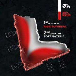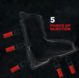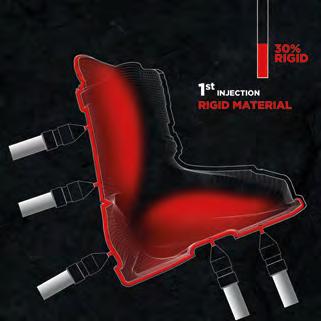 The process involves three injection points on the shell and two on the cuff. This technology can be used to accurately finetune the progressive flex, rear support and rebound. It also allows for highly effective lateral power transfer.
