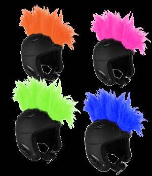 Utsmyckning för hjälmen med tuppkam i fluoroscerande färger som ökar synligheten i backen. Klistras på hjälmen med tejpen som medföljer. Säljes i sorterade 12 pack.