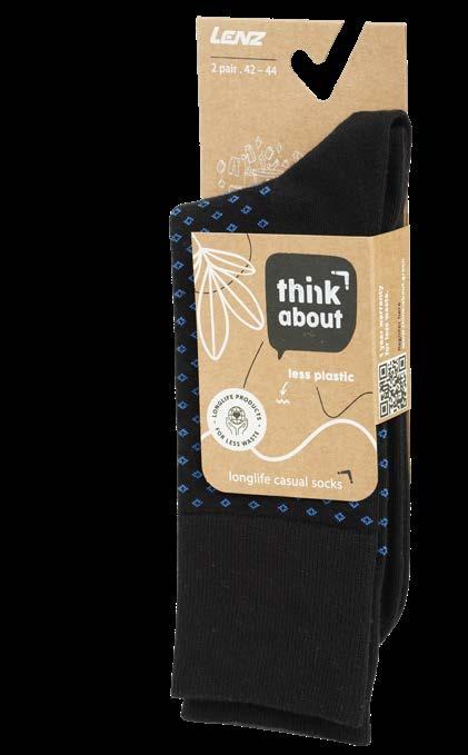 We cannot do without packaging, but we can make it more ecological. From the adhesive tape of the shipping boxes, to sales units in paper bags, to the sock label, we do 100% without plastics.