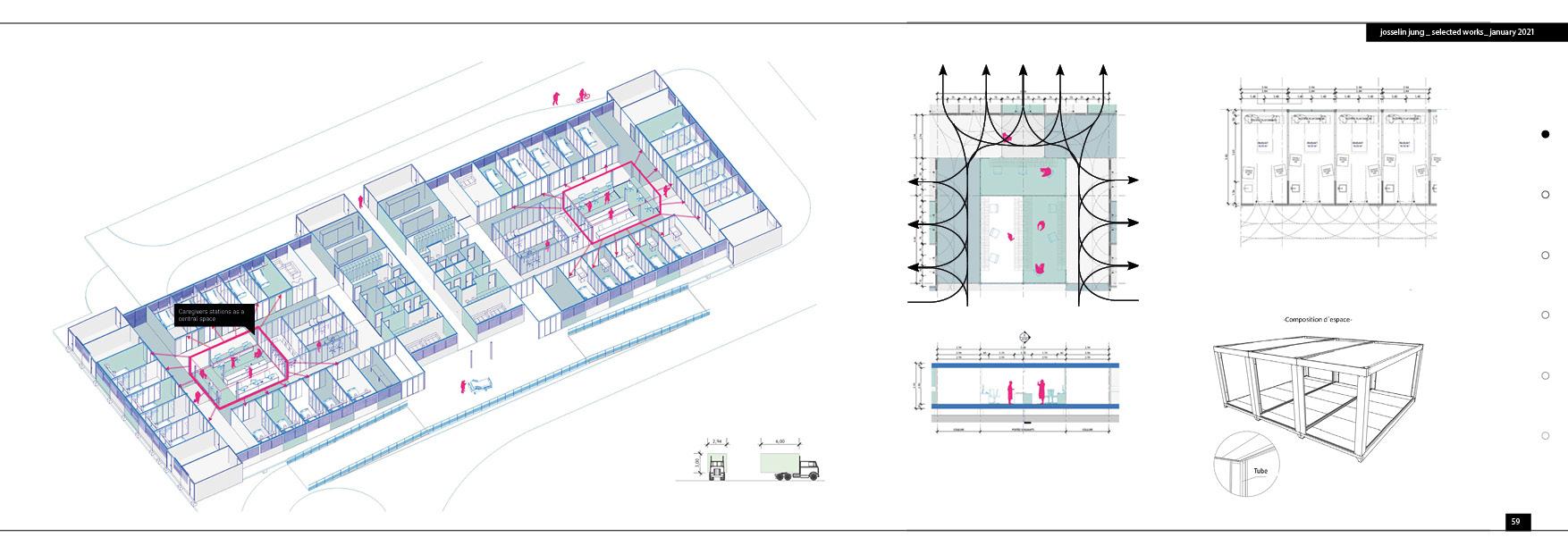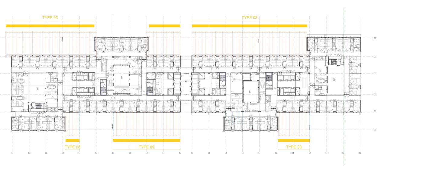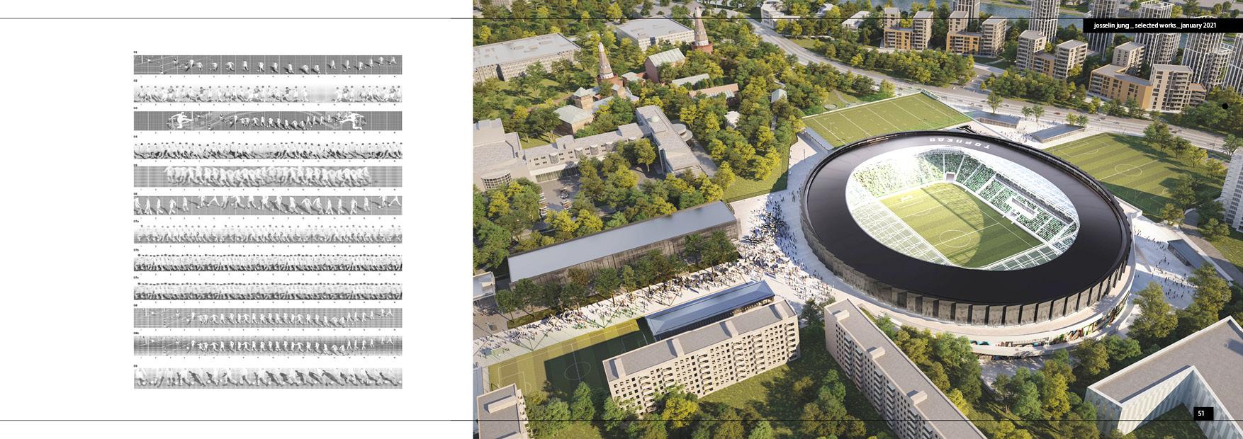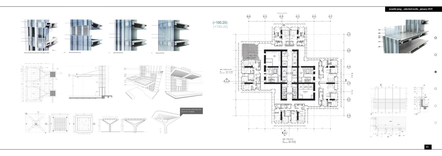 : dPa la stratégie d’organisation fonctionnelle du projet, reposant sur la superposition de 4 lingots quasiment identiques, est très efficace et rationnelle. ce dispositif permet de créer une dynamique sans perturber l’efficacité et la rentabilité des plans. Mon rôle de chef de projet sur la phase aPd consistait principalement à constiuter les booklet d’étude du projet, principalement des façades, en coordination avec les architectes locaux “Hoffmann-janz”. sous la supervision de dominique Perrault et/ou du directeur de projet, j’ai pu constituer les différentes études sur les 3 parties “socle, “fishskin”, et toiture, constituant l’identité du projet.