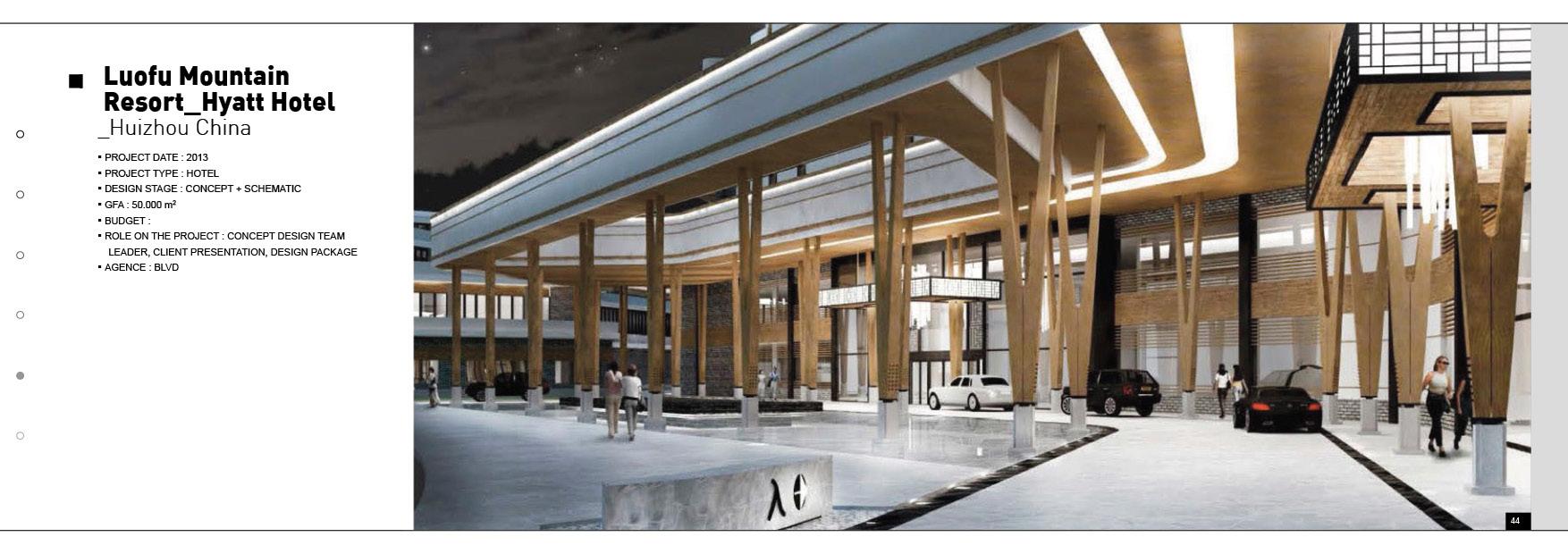 After working as a part time designer during my 2 years of Master’s in Strasbourg, I decided to move to China. My experience in France working on concept proposals for competitions in collaboration with OMA, gave me the desire to pursue in that direction. In Shenzhen, working for the local company BLVD International, gave me the opportunity as a young architect to lead a concept team. It also gave me the chance to show and present hospitality projects schemes to chinese clients.
