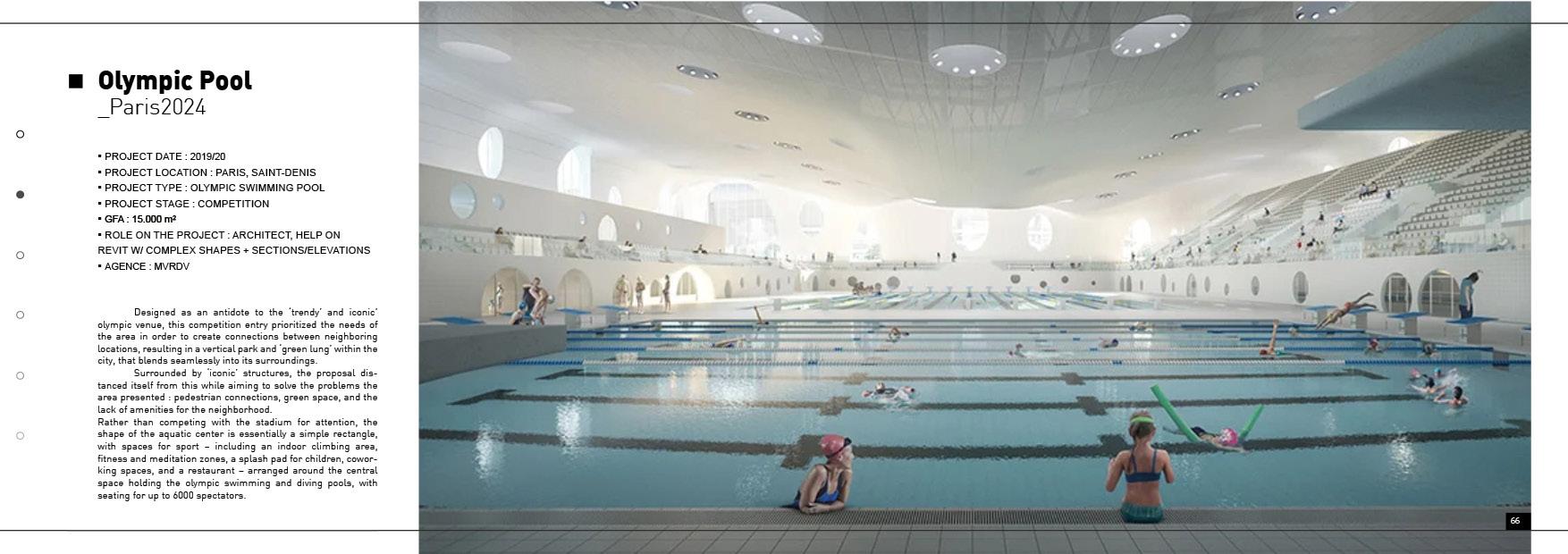 These experiences gained working with BIM softwares, lead me to join the MVRDV team in Rotterdam. I got the chance to work as a project leader on the Vanke headquarter project, and participate on the Paris 2024 swimming pool competition.