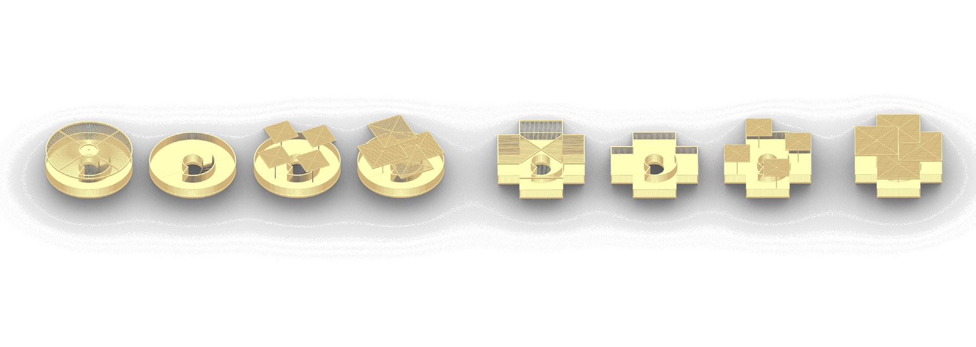 of usages for 24 different pavilions Concept the primitive shelter Follies composition matrix example of composition