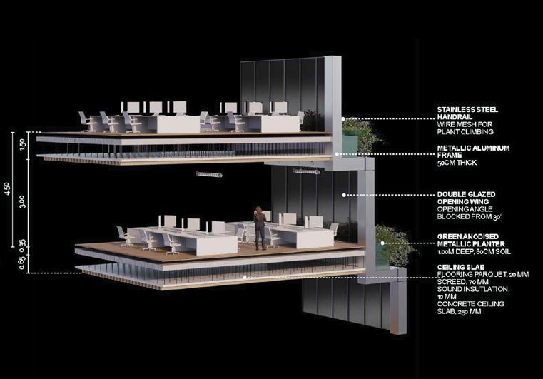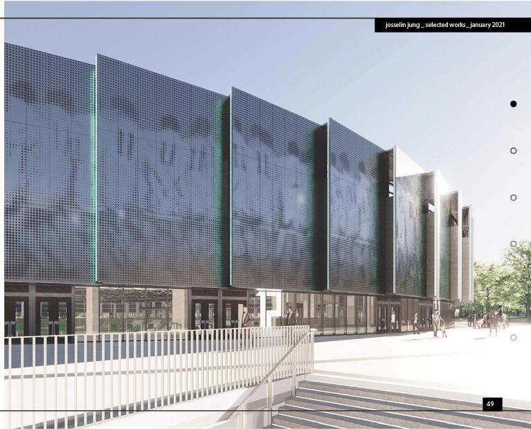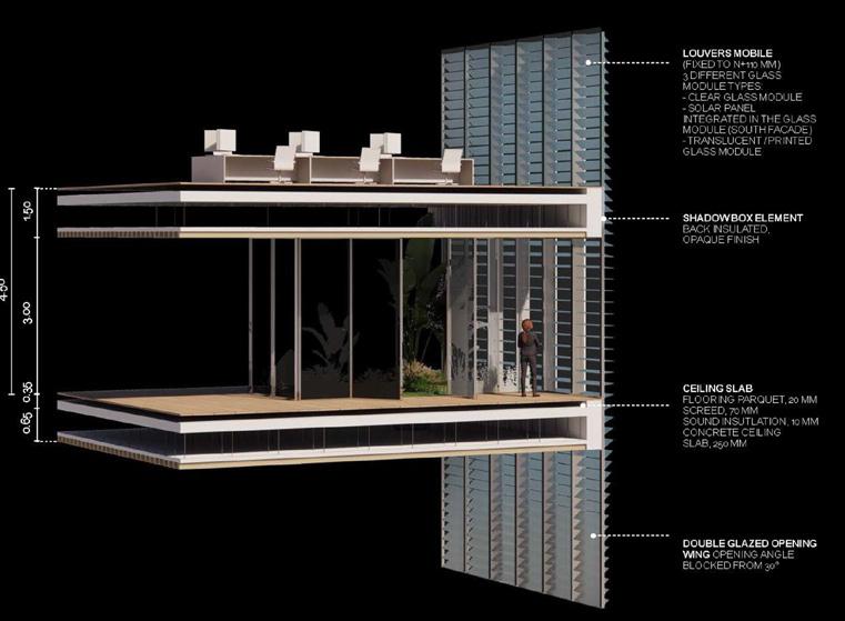4 6 HOHES DACH SOLARSTRESS SÜDFASSADE KONZEPTSCHNITT, EIN HAUS MIT BEWOHNTEM HERZ NORDFASSADE MIT DER GRÜNEN KASKADE M 1:500 1H. ANSICHTEN UND SCHNITTE IM M 1 500 SÜDFASSADE MIT SONNENBLENDEN M 1:500 DAS PROGRAMM +155.00 ÜNHN +110.00 +148.94 ÜNHN +103.94 ÖFFENTLICHES BELVEDERE SÜDFLÜGEL TECHNIK BUSINESS CLUB STOCKWERKE BUSINESS CLUB 15 ETAGEN SPEZIFISCHES PROGRAMM FOYER TECHNIK PARKPLATZ FITNESS TECHNIK RESTAURANTE KÜCHE NORDFLÜGEL BUSINESS CLUB 15 ETAGEN SPEZIFISCHES PROGRAMM LIEFERUNG PARKPLATZ +137.56 ÜNHN +92.56 +47.60 ÜNHN +2.60 RE STAU RANTE FITNESS BELVEDERE NGSRÄUME BESPRECHU TECHNISCHE GEBIETE VERKEHRS KONTROLLE TECHNISCHE GEBIETE FOYER FOYER KONFERENZ LIEFERUNG PARKPLATZ BIKE PARKPLATZ PARKPLATZ PARKPLATZ T. ABTEILUNGEN UMSFLÄCHENPUBLIKAUSBILDUNG KÜCHE DES HAUPTSCHIFF BÜRO BÜRO BÜRO BÜRO BÜRO BÜRO BÜRO BÜRO BÜRO BÜRO BÜRO BÜRO BÜRO BÜRO BÜRO BÜRO BÜRO BÜRO BÜRO BÜRO BÜRO BÜRO BÜRO BÜRO BÜRO BÜRO BÜRO BÜRO BÜRO BÜRO BÜRO BÜRO BÜRO BÜRO BÜRO BÜRO BÜRO BÜRO BÜRO BÜRO 04.2022 LANDESHAUPTSTADT DÜSSELDORF TECHNISCHES VERWALTUNGS GEBÄUDE 4 6 HOHES DACH PROGRAMMATISCHER SCHNITT, ÜBERLAGERUNG VON FUNKTIONEN SOLARSTUDIE WINTER SOLARSTUDIE SOMMER SOLARSTRESS NORDFASSADE SOLARSTRESS SÜDFASSADE KONZEPTSCHNITT, EIN HAUS MIT BEWOHNTEM HERZ GEBÄUDEORGANISATION ZWEI GEGENEINANDER GENEIGTE TÜRME AUF GEMEINSAMEM SOCKEL NORDFASSADE MIT DER GRÜNEN KASKADE M 1:500 1H. ANSICHTEN UND SCHNITTE IM M 500 SÜDFASSADE MIT SONNENBLENDEN M 1:500 LÄNGSSCHNITT DURCH DAS HAUPTSCHIFF M 1:500 ▪ Project date : 2022 ▪ Project tyPe : office tower ▪ design stage : coMPetition ▪ role : facade design, details ▪ office : dPa the HochHaus - Decomposed Facade 10