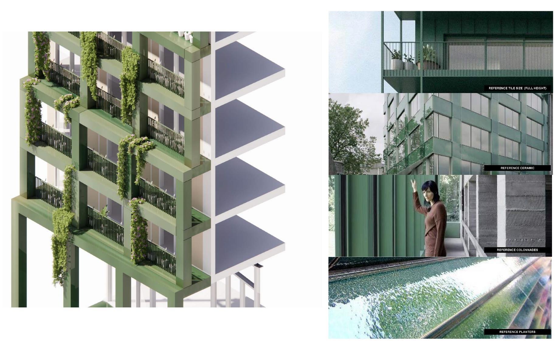 26 b lock 1 Downward Fins b lock 2 Upward Fins b lock 3 Downward Fins b lock 4 Upward Fins Elevation Plan 4 sides s ame a ngle 4 sides s ame a ngle 4 sides s ame a ngle 4 sides s ame a ngle FACADE STUDIES part 2 : fishskin c O r N er PI ece 01 LOBB y LEVEL View from Wehlistrasse - DD stage 6
