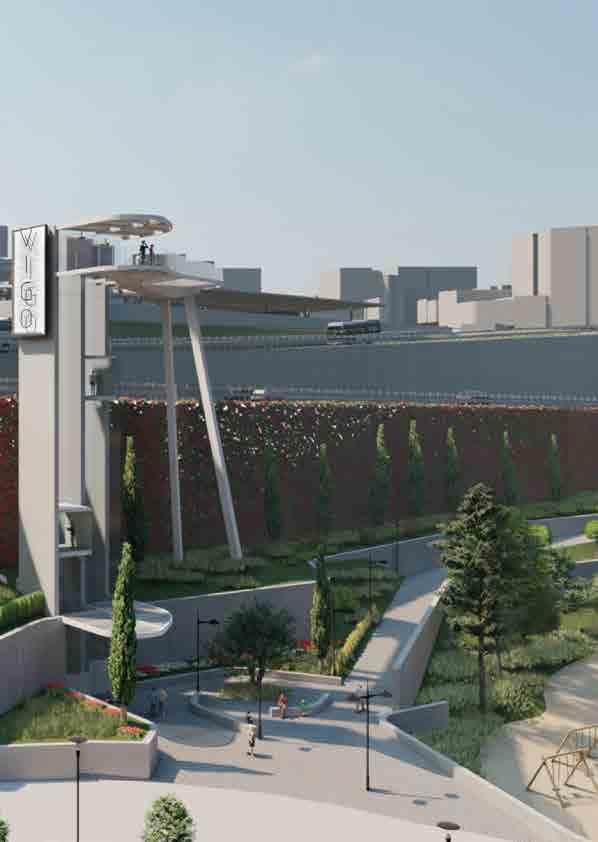 The Vigo city council organised this public conquest in January 2021. This design competition request for a new conection between the low part of the city and the upper part of the new train station of Vigo designed by Thom Mayne. The singular elevator project was thought for saving a height of almost 40 m, with a budget of six million €. This proposal aims to reconnect the city in three diffe-