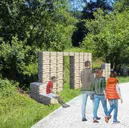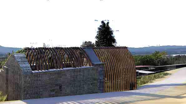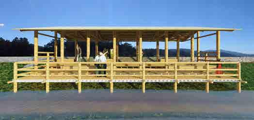 wood, ceramics, granite stone and gabion cages. Finally, the intervention is also complemented with an information stand and two adapted toilets in the car park, so that the place will have a prolonged stay and will serve to position Vilaboa town council as a reference point for interventions in the landscape.