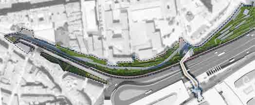 The design of this proposal is a kind of mooring, a point of fastening for the shopping mall to the low harbour part of the city. The linear park included ornamental plants, new street furniture and also a new connection be-