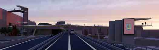 rent dimensions. The lower dimension would be a linear park, a new green axis in the city, the middle dimension, the main footbridge take people to the mall, bus station and train station and the upper part take the visitors to the new urban square in the roof of the mall.