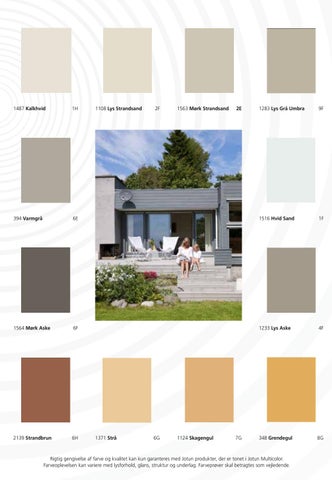 Rigtig gengivelse af farve og kvalitet kan kun garanteres med Jotun produkter, der er tonet i Jotun Multicolor. Farveoplevelsen kan variere med lysforhold, glans, struktur og underlag. Farveprøver skal betragtes som vejledende.