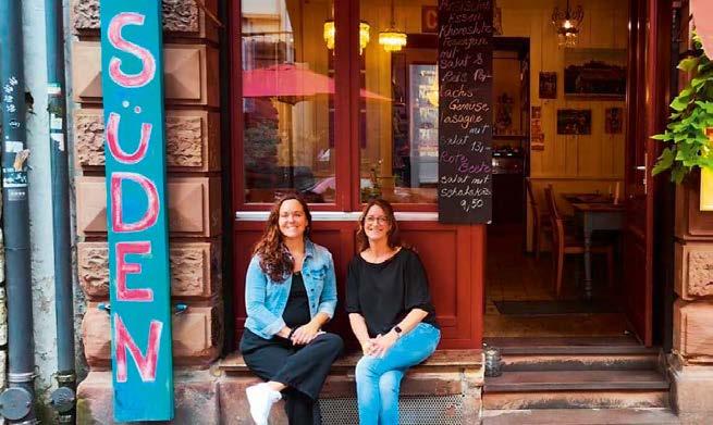 Verena Pietrusky und Dana Hardt vor dem Café Süden auf der Berger Straße.