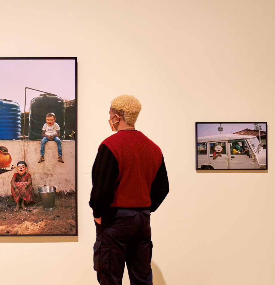 Insbesondere ihre freundschaftlichen Bezie hungen zu Frauen bringt die Künstlerin hier, wie in ihrem gesamten Werk, in persönlichen Porträts zum Ausdruck. Als Gegenpol zu ihren Projekten in der Wüste widmet sich die Foto serie „The Americans“ (2000–2007) der viel fältigen Lebenswelt der indischen Diaspora in Hinblick auf Migration, Heimat und kulturelle Verbundenheit. Die Ausstellung zeigt zudem Gills kollaborativen Ansatz, u. a. in der Zusam menarbeit mit oft unbekannten Künstlerinnen und Künstlern aus ländlichen Regionen.