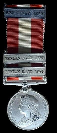 Cette médaille appartenait au lieutenant-colonel T. Lyman. Elle porte des barrettes pour la rébellion de la rivière Rouge de 1870 (également connue sous le nom de Première rébellion de Riel) et les raids des Fenians de 1870 et 1866.