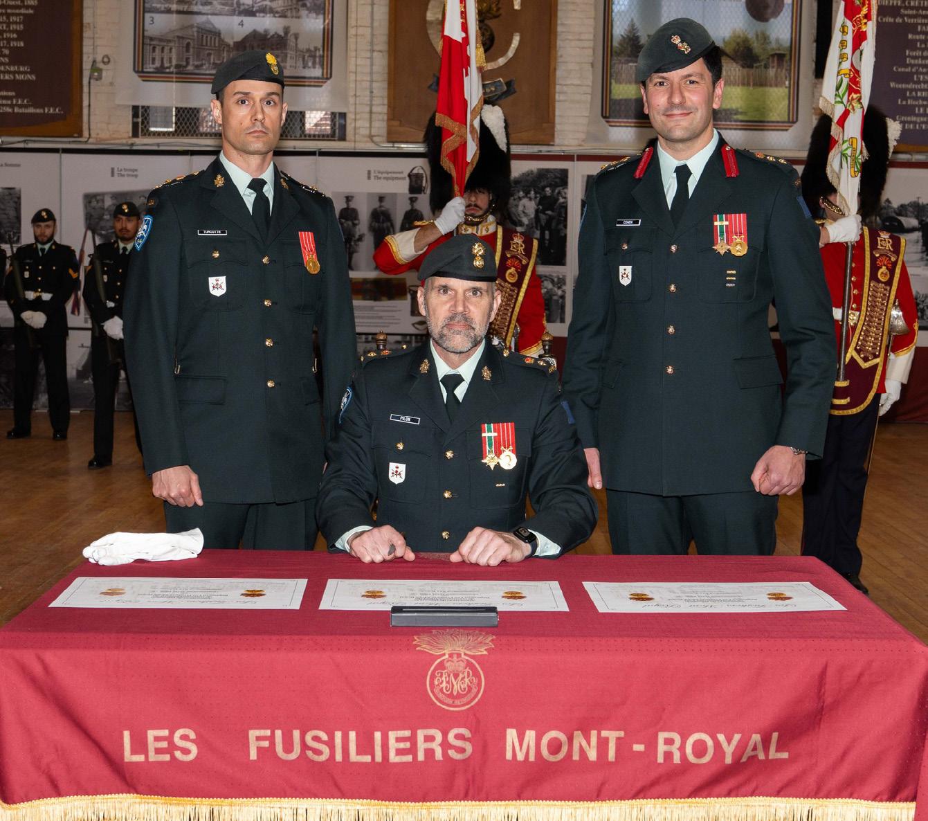 Rear: Honorary Colonel Christian Mercier, Honorary Lieutenant-Colonel Ginger Petty. Front: Lieutenant-Colonel Alexandre Dionne, designated commander, Colonel Alain Cohen, commander of the 34 th Canadian Brigade Group, and Lieutenant-Colonel Jose Ramon Nuñez, outgoing commander.