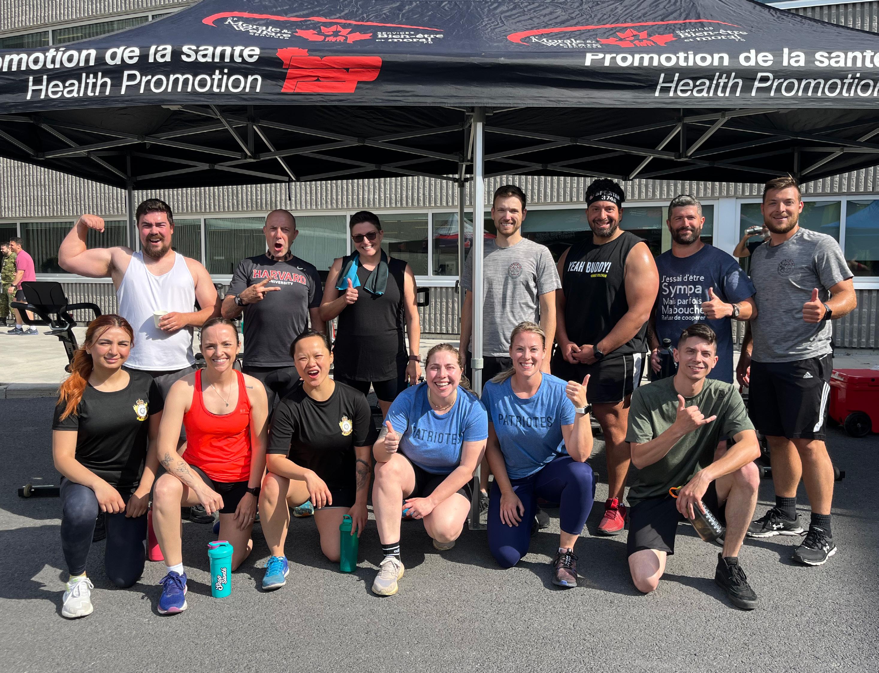 Le 4 juin en avant-midi, une quarantaine de militaires et d’employés civils de la Défense nationale ont accepté l’invitation des équipes de la Promotion de la santé, du conditionnement physique et des sports militaires des Programmes de soutien du personnel – Région Montréal et ont relevé le Défi relais à vélo. Chaque équipe était formée de trois personnes. Les participants devaient pédaler pendant 60 minutes en se relayant. L’activité a été tenue à l’extérieur sous un chapiteau. Bravo aux courageux cyclistes!