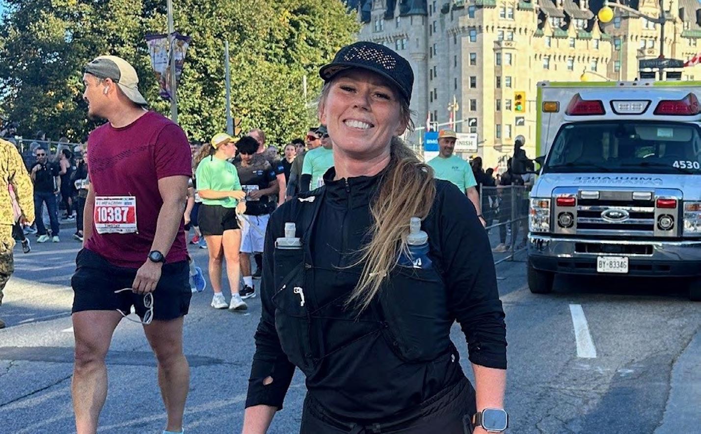 Il s’agissait de mon 2e marathon cette année. Je suis fière de l’avoir complété dans mon contexte familial actuel alors que je vis l’absence de mon conjoint militaire. C’est important de me rappeler que je fais tout ça pour moi et j’espère inspirer d’autres conjointes de militaires à se choisir malgré tous les défis. Comme dans la vie, un marathon est une succession de choix conscients, à chaque pas, qui consistent à se choisir encore.