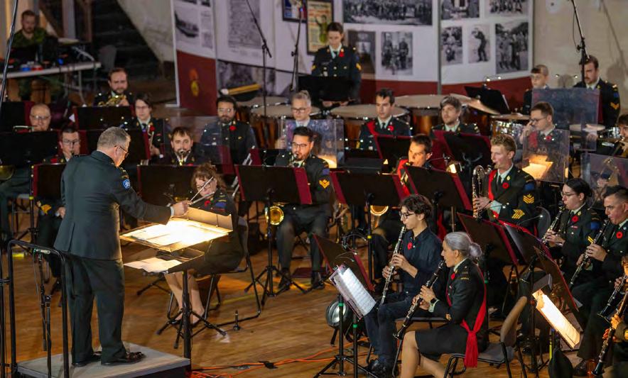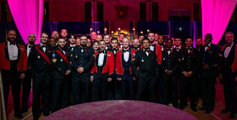 La soirée a été animée par lieutenante-colonelle honoraire Isabelle Racicot. Elle a rappelé aux invités que ce manège militaire a été construit comme un mémorial vivant pour les 1 192 membres du RMR tombés durant la Première Guerre mondiale. Des plaques supplémentaires honorant les soldats du RMR de la Seconde Guerre mondiale et les disparus du Corps des transmissions royales du Canada se sont ajoutées depuis, renforçant le rôle du bâtiment comme lieu de mémoire.