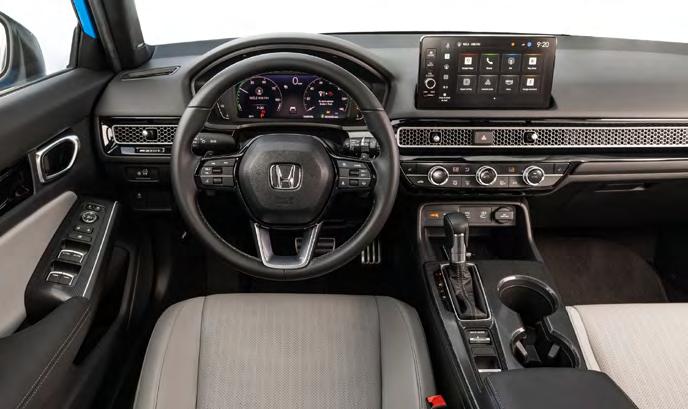 À bord de la nouvelle Civic Hatchback Sport Touring Hybrid 2026, l'ambiance est résolument moderne. L'aménagement intérieur est soigné, avec une planche de bord épurée pour le conducteur et le passager. L'écran de la console centrale est intuitif et convivial. Il donne accès aux informations détaillées du système hybride-électrique ainsi qu'aux fonctionnalités multimédias, avec une intégration fluide d'Android Auto et d'Apple CarPlay. Pour un usage facilité, les contrôles de climatisation et de chauffage sont sagement positionnés juste en dessous de l'écran. Le confort est au rendez-vous : les sièges sont convenables et la suspension, bien calibrée, n'est pas trop ferme, ce qui permet d'affronter sereinement les routes les plus cahoteuses.
