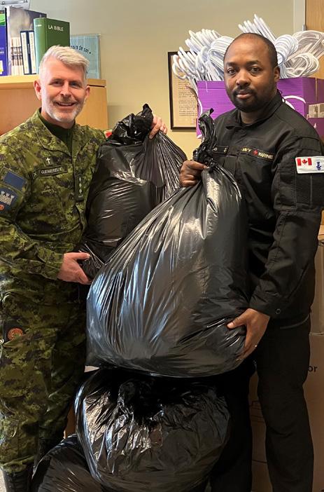 | Matelot de 3e classe Jean Wamba Okoko Récemment, je me suis porté volontaire pour aller porter des dons à l’Accueil Bonneau en compagnie du capitaine Éric Généreux, padre au Service de l’aumônerie du Groupe de soutien de la 2 e Division du Canada. Au nom de l’organisme, j’aimerais remercier tous les membres de l’Équipe de la Défense qui ont rendu ceci possible.