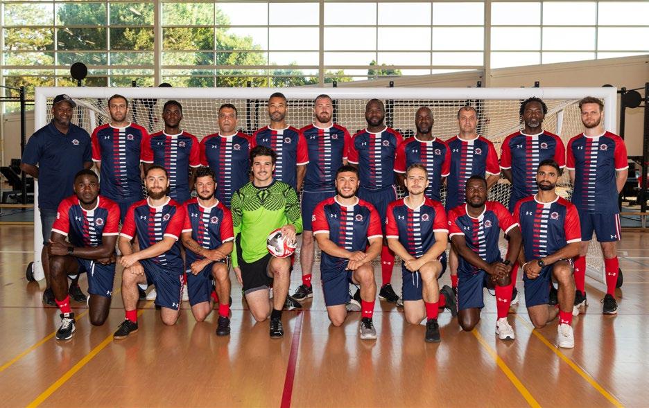 At the back: Major Alpha Ibrahima Bah (coach), Major Puyan Ghaffari, Private Williams-Deryl Tagné-Takougoum, Captain Behrang Ghaffari, Major Alexandre Lescot, Sergeant Pierre-Éric Léonard, Captain Christophe Hebia, Warrant Officer Davidson Isaac, Private Arcadie Osadcii, Captain Serge Atanganamendouga, and Corporal Justin Ripley. Front row: Lieutenant Patrick Pouhe, Master Corporal Royner Oviedo Espinoza, Corporal Kevin Da Costa, Officer Cadet Xavier Arsenault, Master Corporal Brandon Molina, Captain Andriy Babych, Private Kouamé Brou and Captain Karim Debian.