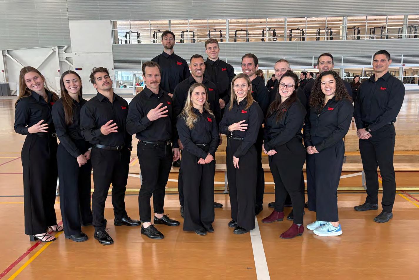 À la Garnison Saint-Jean, les employés ayant atteint le niveau PLATINE. À l’arrière : Mael Belcourt, Bruno Lavergne, Alexandre Lévesque, Philippe Laplante, Jonathan Beaudin, Matthew Boismenu et Mathieu Doucet. À l’avant : Kelsey Sylvester, Ariane Bernard, Justin Dupré, Maxime StLaurent Bonneau, Amélie Côté, Kathleen Laperle et Marika Gosselin, ainsi que Lara Bargone (de la Garnison Montréal).