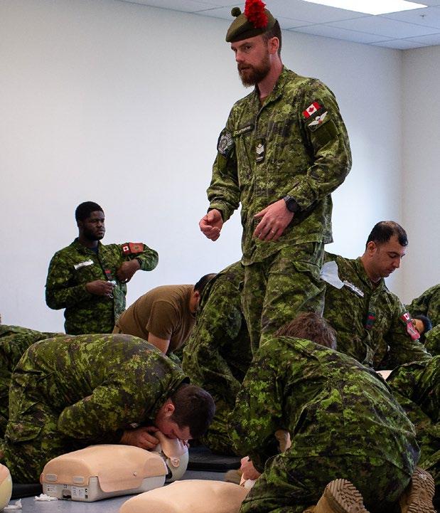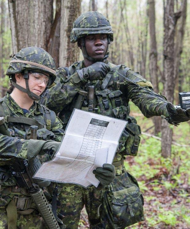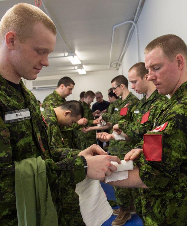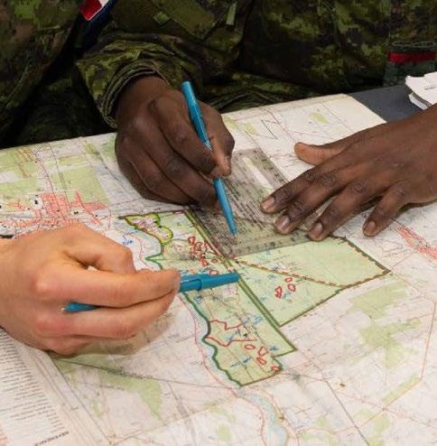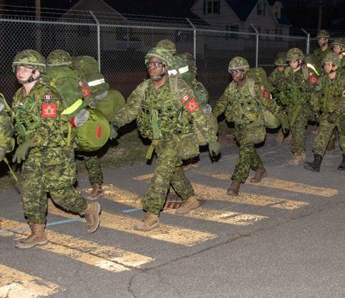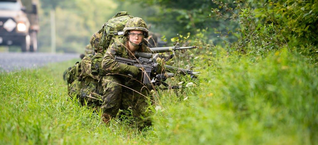 Chaque semaine, le pilier des compétences militaires permet aux candidats d’apprendre des techniques qu’ils utiliseront tout au long de leur carrière, notamment le maniement d’armes avec la C7A2, les mouvements de l’exercice élémentaire (drill), les compétences d’autoprotection pour opérer dans un environnement chimique, biologique, radiologique et nucléaire (CBRN), les premiers soins, la réanimation cardio-respiratoire (RCR), la préparation de l’équipement militaire et la capacité à opérer dans un environnement austère.