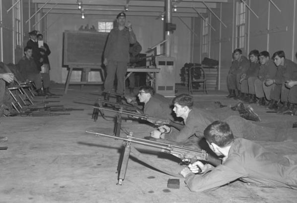 Fondation de l’établissement qui porte alors le nom d’École de recrues des Forces canadiennes (ERFC). À cette époque, l’École forme uniquement des militaires du rang. Une section d’entraînement en campagne est ouverte au Camp Farnham.