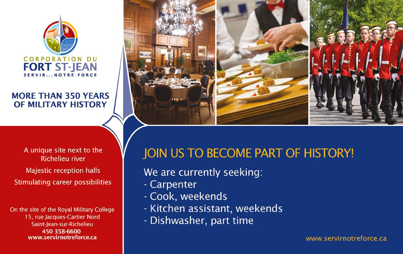 Information and registration: 514-252-2777 # 2476 or jonathan.gauthier-larochelle@forces.gc.ca
