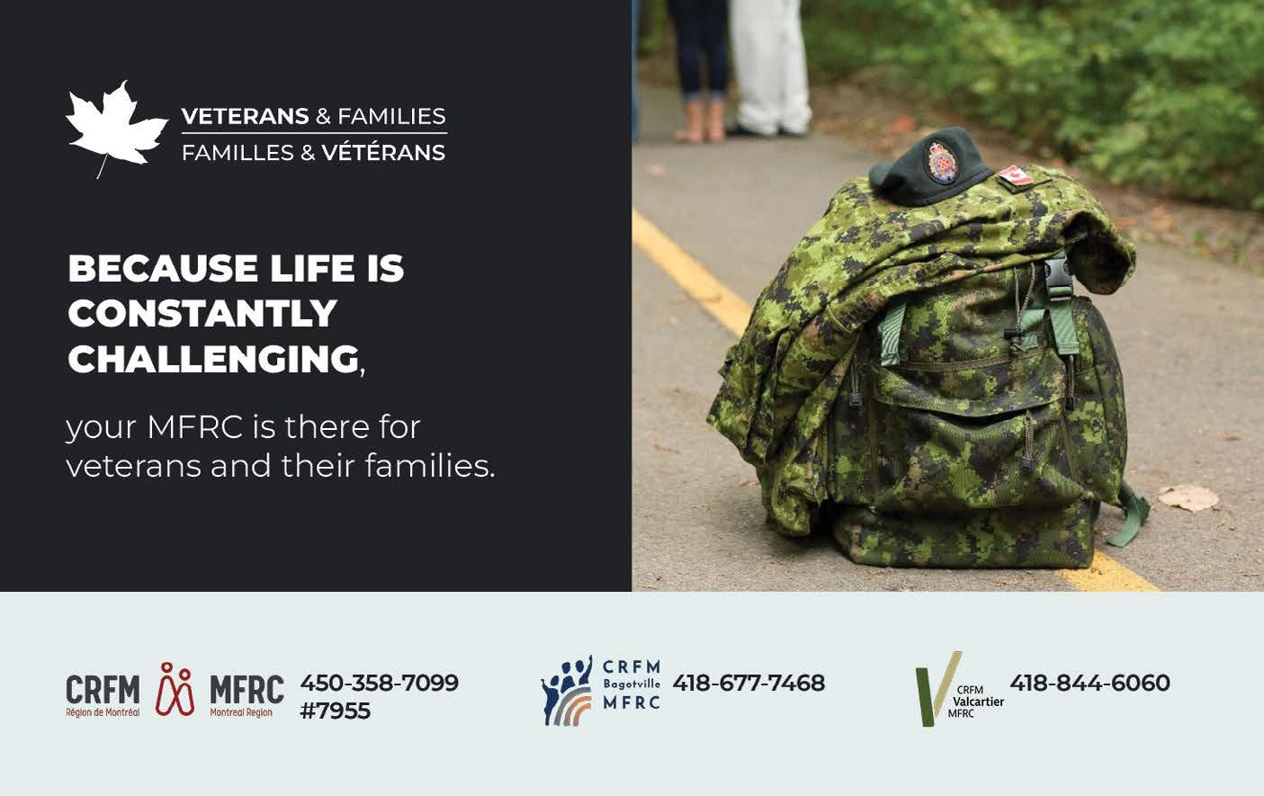 Myriam Dutour is a social worker and coordinator of the Veteran Family Program at the Montreal Region Military Family Resource Centre (MFRC). She explains that this process can be a particularly stressful and complex time for CAF members because it affects many areas of their lives: personal, social, family and financial. “For the family, this moment can be a time of misunderstanding and helplessness. We do not always realize it, but there is no other profession at the civil level that requires such a symbiosis between the worker and his organization.”