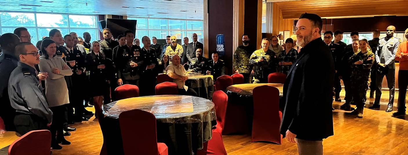 On Thursday, February 9, the atmosphere was festive at the Canadian Forces Language School – Saint-Jean Detachment. The Detachment highlighted the arrival of 60 foreign military members who came to learn English or French as part of the Military Training and Cooperation Program. Foreign