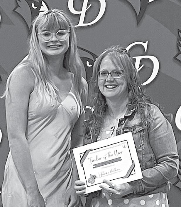 The CD student receiving the award for choir was DeLaney Brown. The following was read by Mrs. Beth Hall, the CD PK-12 Vocal Instructor, about DeLaney. “The student (continued on page 2)