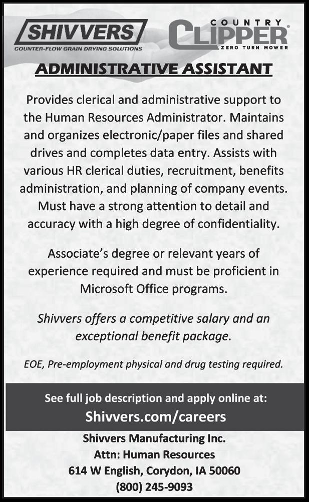 NATE THARP ● Mowing ● Trimming ● Lawn Weed Control ● Lawn Pest Control ● Lawn Fertilization ● Leaf Management ● Mulching ● Shrub Trimming Midwest Wholesale Outlet Your 50% off Everything Store Closeouts, Returns, Surplus TRUE VALUE STORES 19563 Hwy 69 N, Leon, IA 1012 Jeffreys Dr. Osceola, IA “We are taking on new customers for lawn care and pest control.” Custom Leather & Saddle Work Yoder’s Collars 25090 Co Hwy J66 Davis City, IA 50065 Jody Wilson in partnership with Eric Dale 641-572-0990 for emergency repairs │jody@leonphc.com Serving South Central Iowa Specializing in: GeoThermal, Boiler, Heating/Cooling **WINTER MAINTENANCE ON HEATING UNIT** $69 in town $79 outside area 7 Years of technical service experience. CALL TO SIGN UP FOR ONE OF OUR MAINTENANCE PLANS! 641-572-0990 | jody@leonphc.com Serving South Central Iowa O’HAIR MOWERS Where Weldon and Van Wert meet by the Water Tower on Highway 69 WE HAVE MOWERS FOR ALL BUDGETS! WE LOOK FORWARD TO SEEING YOU! 641-445-5687 10953 US Hwy 69 Van Wert, IA Check out our Great Selection of Sun’s Out! Mowers Out! MECHANICAL MAINTENANCE Graceland University has two openings for a Mechanical Maintenance Position on the Lamoni, IA campus. Applicant must have a positive outlook and be solution oriented. Must have education, experience, or willing to learn in 1 or more of the following areas: electrical distribution, refrigeration, boiler plant operation, chiller plant operation, plumbing, HVAC, appliance repair. Will consider someone willing to learn and get the training. Must be able to routinely lift 50+ pounds and be able and willing to work in all extremes of conditions including heights. Some overtime is required, and individuals must be accessible for “on call” service. Application procedure: Review of applications will begin immediately and will continue until the positions are filled. Wage $25.00. Full benefits which include 4 weeks paid vacation and tuition benefit. Submit resume to personnel@graceland.edu or apply online: https://www.graceland.edu/about/employment/.