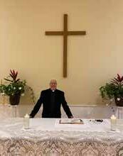 Fr. Denis at the altar getting ready for the 100th anniversary mass (Oct. 7th the actual day of the anniversary)