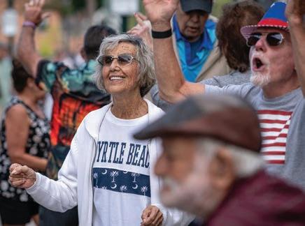 Visitors can take in the sights and sounds of the band performing in the gazebo, children playing in the park