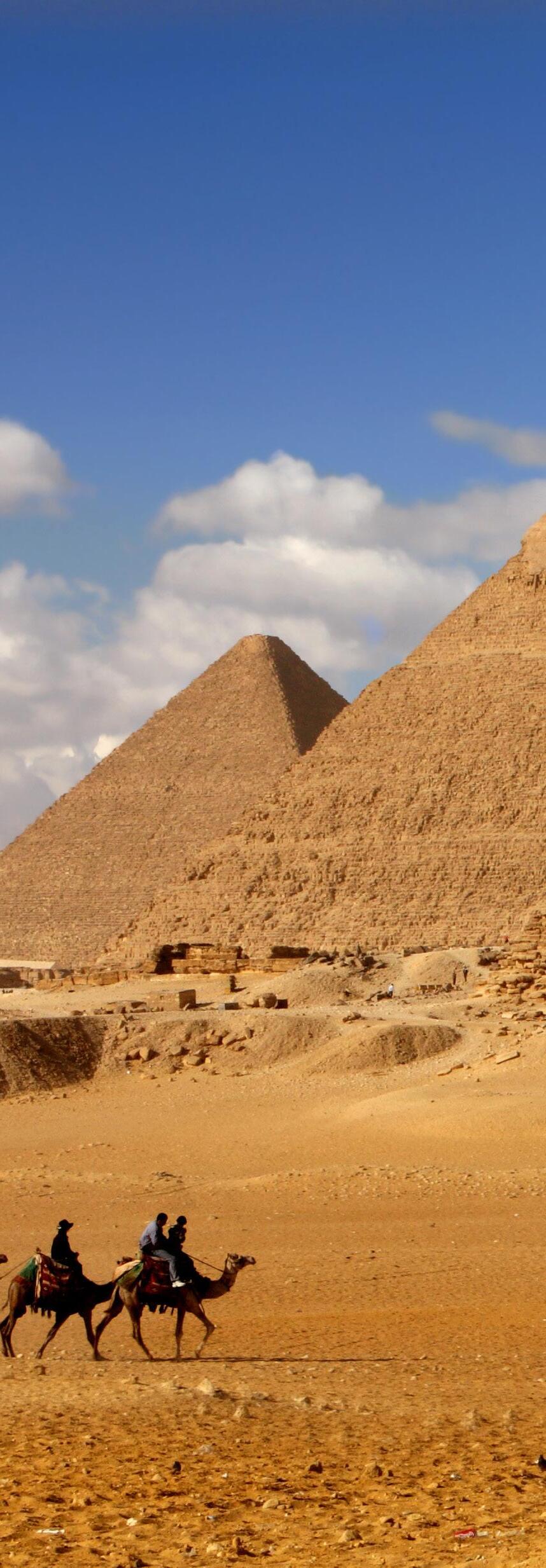 After breakfast, your guide will meet you at your hotel, ready to start exploring ancient Egypt. Lying on the western edge of Greater Cairo, the great Pyramids of Giza; (Cheops, Chephren and Mycerinus) are the only surviving structures from the Seven Wonders of the Ancient World - a single pyramid is built with 2,300,000 blocks, each weighing an average of two and a half tonne. The Ancient Egyptians built the Pyramids as tombs to preserve the bodies of their dead kings, believing in resurrection and immortality.